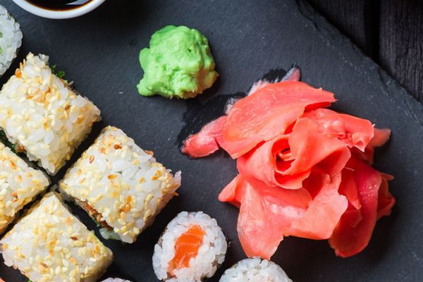 Gừng muối (gari) và wasabi, hai thành phần không thể thiếu để món sushi trở nên tròn vị nhất. Chất chống oxy hóa trong gừng muối và wasabi giúp bảo vệ tế bào khỏi tổn thương do các gốc tự do gây ra, từ đó giảm nguy cơ mắc các bệnh mạn tính như ung thư và bệnh tim mạch. Gừng muối không chỉ làm sạch khẩu vị mà còn hỗ trợ tiêu hóa, trong khi wasabi, với vị cay đặc trưng, giúp kháng khuẩn và tăng cường hệ miễn dịch. Việc kết hợp gừng muối và wasabi trong bữa ăn sushi không chỉ tạo nên hương vị độc đáo mà còn mang lại nhiều lợi ích sức khỏe. Nhờ vậy, sushi không chỉ hấp dẫn về mặt ẩm thực mà còn có giá trị dinh dưỡng cao, góp phần bảo vệ sức khỏe toàn diện.