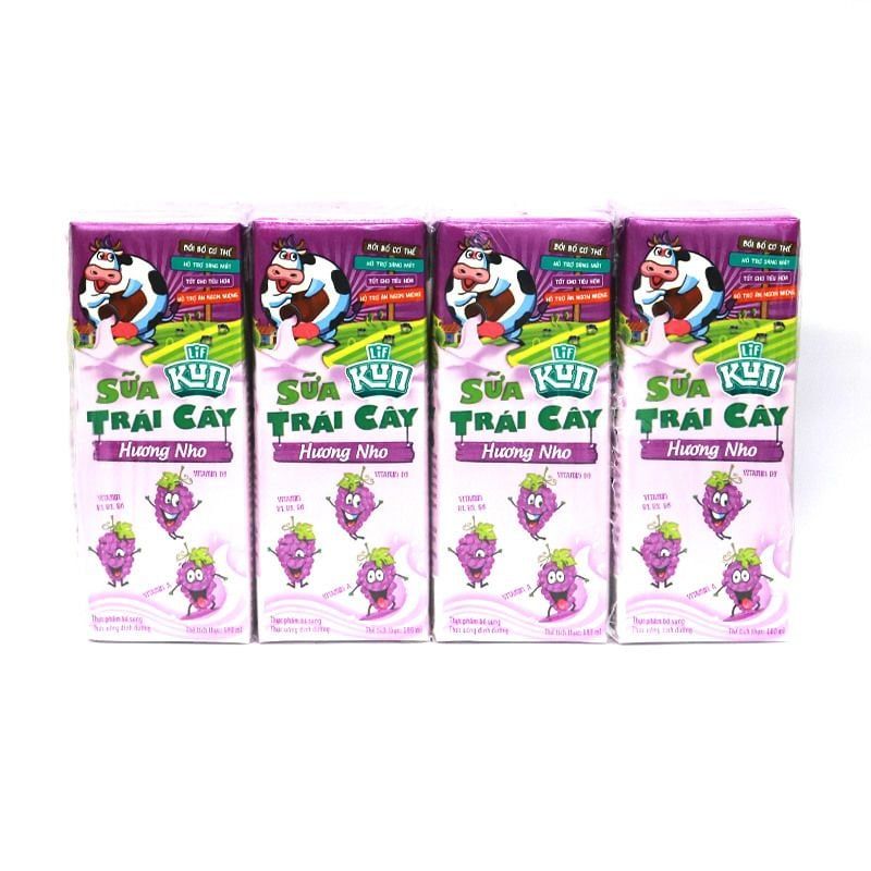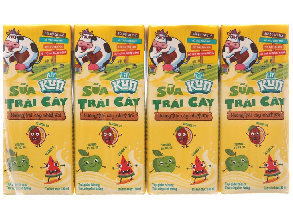 Sữa trái cây thơm ngon từ thương hiệu sữa trái cây LIF bổ sung 5 loại Vitamin và khoáng chất giúp tăng cường sức khỏe mỗi ngày. 4 hộp sữa trái cây Lif kun trái cây nhiệt đới 180ml thơm ngon tự nhiên mang lại cảm giác thưởng thức thật tuyệt vời
